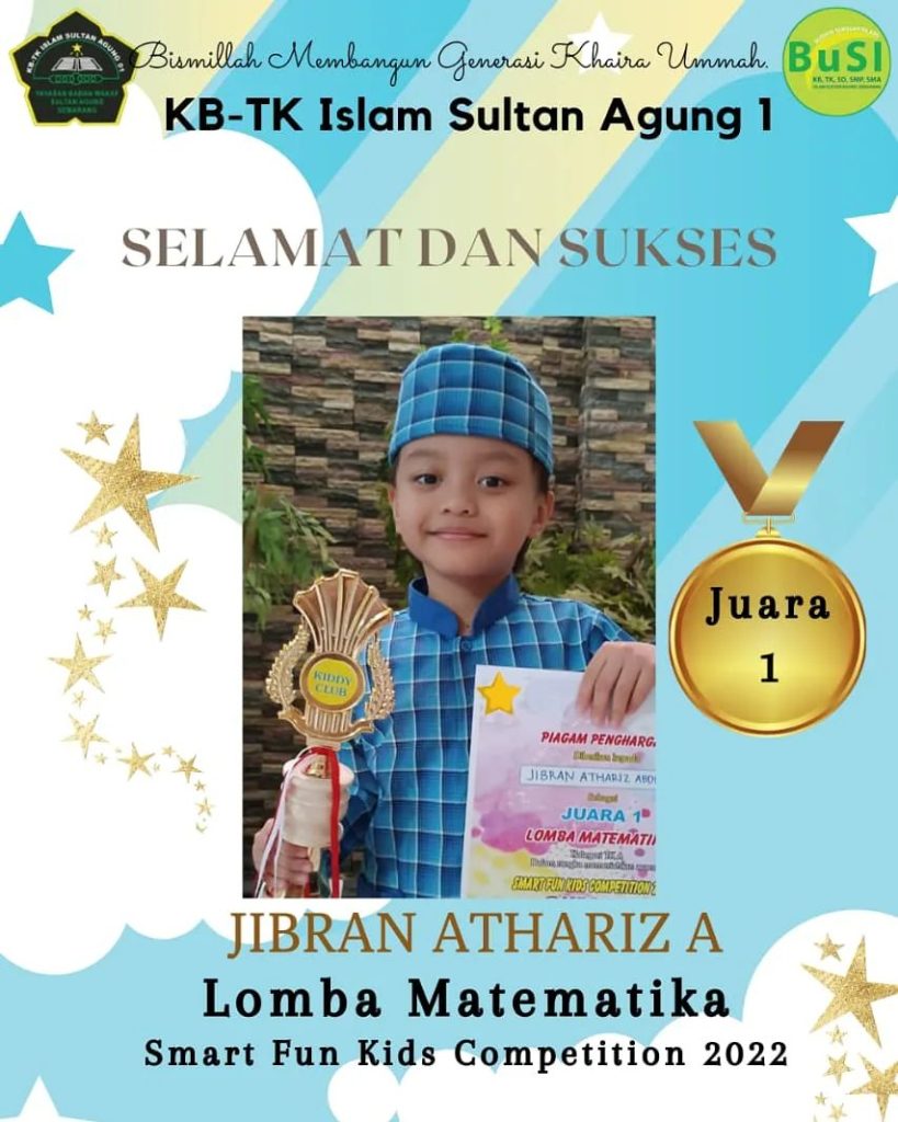Diraih Oleh : Jibran Athariz A sebagai juara 1 lomba matematika Smart Fun Kids Competition 2022