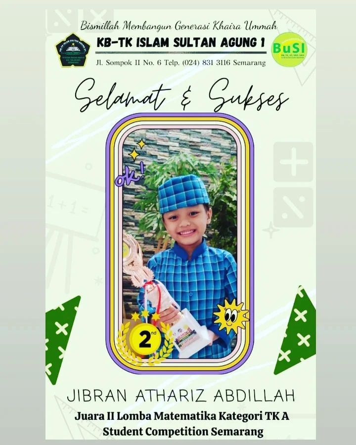 Diraih Oleh : Jibran Athariz Abdillah dalam Lomba Matematika Kategori TK A Student Competition Semarang