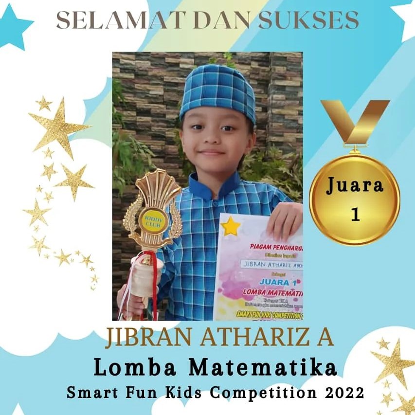 Diraih Oleh : Jibran Athariz A sebagai juara 1 lomba matematika Smart Fun Kids Competition 2022